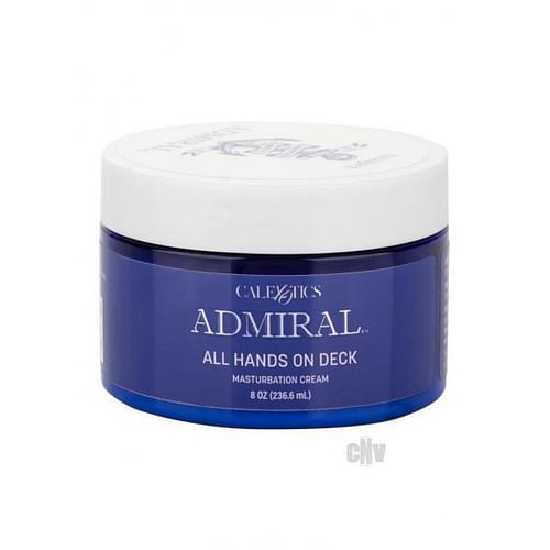 Explore uncharted territories of pleasure and explore any way you desire with the Admiral All Hands On Deck Masturbation Cream. The premium cream lubricant is enriched with moisturizing almond oil for a super-slick feel. Keep playtime going as long as you can with the slippery wet formulation for a naturally moisturizing and long-lasting effect. Expertly created by the sexual health experts at CalExotics, the creamy formula is pH-friendly, safe for all skin types, and free from artificial fragrances and colorants. Made in the USA. How to Use: Use as needed to enhance intimacy and lubricate pleasure. Apply a small amount of cream lube to desired area to lubricate, reapply as needed. Easily washes away with warm water.