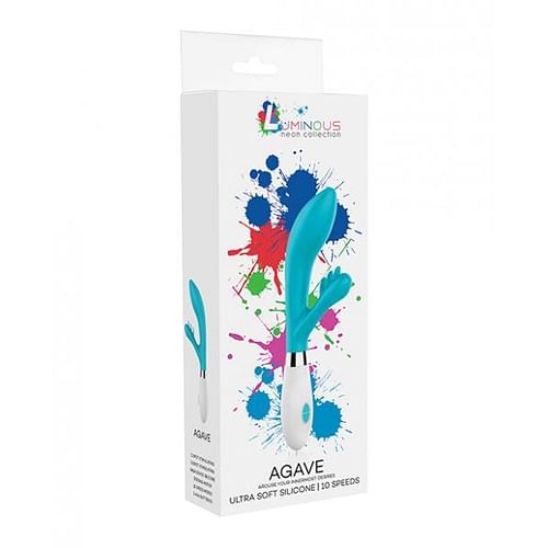 Agave Ultra Soft Silicone 10 Speeds Turquoise Rabbit Vibrator from Shots Toys. Agave offers a delicious extra: 4 tantalasing extensions on the clitoral stimulator. This rabbit style vibrator will take you on a magnificent trip to orgasm heaven! Offering 10 different speeds at 5200rpm, this vibrator will help you achieve unbelievable pleasure. With little to no sounds <50 dB this beautiful toy can be safely used in private. Made from smooth, phthalate free, medical grade Silicone and ABS plastic the Agave stands 9.1 inches tall, has an insertable length of 5.5 inches with a diameter of 1.4 inches. This beautiful toy is battery operated. Just put 3 AAA batteries and enjoy a undisturbed pleasurous play time! Specifications: dimensions package 3.94 inches by 1.93 inches by 10.83 inches. Weight package 6.88 ounces. Product dimensions 9.09 inches by 2.76 inches by 2.76 inches. Product weight 5.11 ounces. Product diameter 1.42 inches. Insertable length5.47 inches. Quantity motors 2. Rotations per minute 7000rpm. Speed modes 10. Batteries required3. Batteries type AAA. Batteries not included. Splashproof. Phthalate free body safe materialsSilky Smooth Silicone and ABS Plastic.