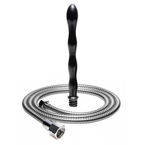 This intimate cleansing kit comes with a smooth, deep penetrating nozzle and a 79 inch hose, designed to get in all your hard to reach places with ease. Just screw the hose onto your existing shower or sink system, and utilize a constant, steady stream of water. Perfect for all your personal cleansing needs! Measurements: Tip: 9 inches in length, 1.15 inches in diameter. Hose: 79 inches in length. Material: PVC, metal. Color: Black