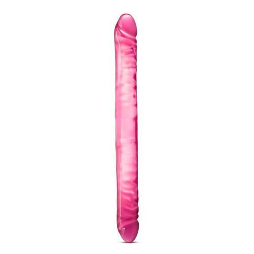 Blush Novelties B Yours 18 inches Double Dildo Pink. Fun for all. Perfect for couples that both enjoy penetration. Feel. Realistic feel with just the right amount of firmness for a better than real experience. Large size. With 18 inches total length and 1.59 inches of width, this dildo will fill you up.