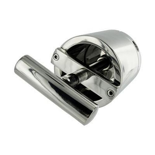 Make your sub beg with the heavy steel Ball Press Chamber. Secure the removable ring around their scrotum, then place their balls into the hollow chamber. Use the included hex key to lock the ring onto the end of the chamber and their boys are now enclosed in a cool steel cylinder. Now you are in control! As you slowly turn the T-handle, a steel disc inside the Press Chamber descends on their balls, gradually reducing the amount of space inside the cylinder. Warn them with a bit of gentle pressure, then maybe tighten things down some more for some more serious discipline. Get instant compliance to your slightest demand, every time, with the steel Ball Press Chamber!