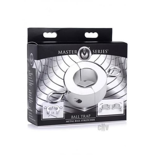 Indulge in intense ball-tugging play with the Ball Trap! Bring some heavy metal to your naughty activities and feel the satisfying stretch from this weighty ring. Designed to pull down on your sack with 11.6 ounces (220 grams) of weight, this metal ball stretcher is crafted for BDSM enthusiasts with a penchant for testicular play. Featuring two attachment points for additional accessories, this Ball Trap is the perfect foundation to base your scene for the night. Punish your sub for his bad behavior with additional weights or chains connected to some ankle cuffs and force him on his knees! Allen wrench included to undo and secure the screws holding the two halves of this ring together. The aluminum alloy material is easy to clean before and after use. Measurements : Overall length 4.4 inches, diameter 2.4 inches, inner diameter 1.3 inches, thickness 1 inch Materials : Aluminum alloy Color : Metal