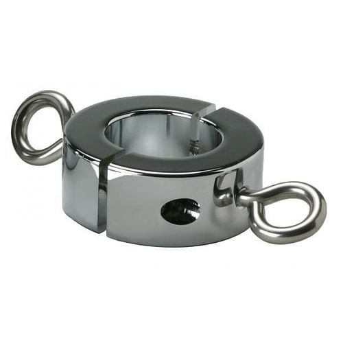 Features: These ball stretchers seperate in the middle, via an allen screw, allen wrench is included. This makes for an easier and more comfortable fit than other ball stretchers, instead of having to pull the balls through the opening, The tighter more comfortable fit also lessens the likely hood of the stretcher popping off, Two eyebolts that are attached via screw can be used to attach weights, ropes, locks, etc.the possibilities are endless! But remember to be gentle with the balls when exploring the possibilities. Is designed to be used with the optional ball crusher attachment below. Sizing 2.37 inches by 1 inch, 1.37 inner diamter. Combining weights together can allow you to obtain different sensations and amounts of stretching. The ball weight on model is the 16oz size.