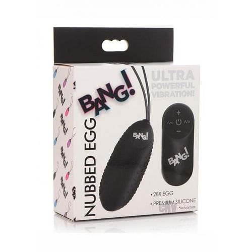 This powerful silicone egg vibrator has textured nubs that add extra stimulation as it vibrates inside.The silky smooth, premium silicone is phthalate-free and body safe to use.Use the battery operated remote control to switch between 4 speeds and 7 patterns of powerful vibration while the egg rumbles inside!Recharge the egg using the USB cable provided by pressing the pin into the dimple on the side.Made with waterproofing materials, this egg is splashproof and perfect for wet adventures!First, turn the vibrator on so it can pair with the remote control before ing.Use plenty of your favorite, water based lube on yourself and the egg, then hold onto the pull string as you push it inside.Start playing with the settings so you can feel the powerful rumble of vibration within.Use it on yourself or hand the remote to a partner for coupleandrsquo;s fun!After use, simply wash the toy with warm water and soap, then spray with a toy cleaner, wipe down and let it fully dry.Store in a cool, dark place. Measurements: Overall length: 2.75 inches, Overall width: 1.2 inches, Cord length: 3.6 inchesMaterials: Silicone, ABS plasticColor: BlackNote: Remote distance up to 32ft, requires 1xCR2032 battery (included). Key Features: Premium Silicone: This vibrating egg is made from phthalate-free, premium silicone and is silky smooth and safe to use! Textured Egg: This slim, oval shaped egg has small, textured nubs along the body for extra stimulation Powerful Vibrations: Enjoy 4 speeds and 7 patterns of powerful vibration that you can mix and match using the remote control included. Waterproof and Rechargeable: Made with IPX5 waterproofing, this toy is splashproof and safe to use with water based lubricants and other water based liquids. Recharge using the USB charging cable included.