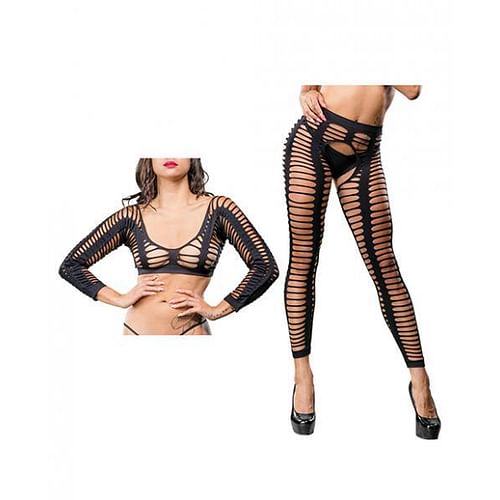 Beverly Hills Naughty Girl Crotchless All Over Straps Mesh Leggings.