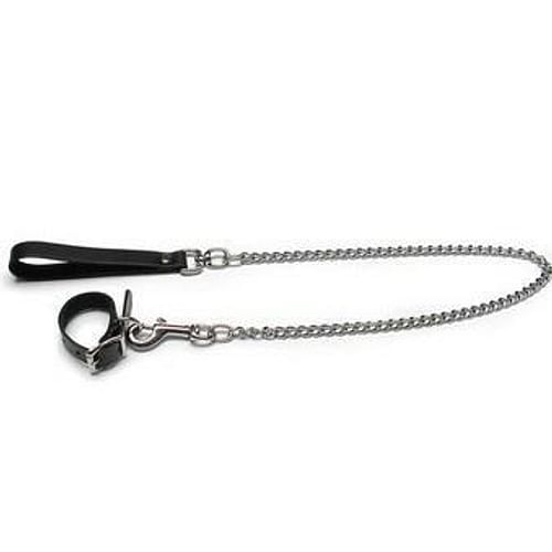 • 1 Buckling Cock Ring • 1 Chain Leash w/ Leather Handle Follow the Leader… Attach chain leash to buckling leather cock ring for maximum control.