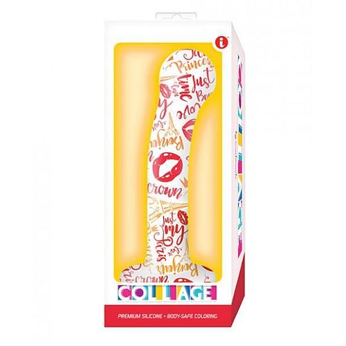 Collage I Remember Paris Dildo from Icon Brands. Premium silicone lovey toys, with beautiful, body safe coloring. Each piece is hand crafted for your unique pleasure. Eye popping designs tattooed right onto the silicone. Soft, silky and just the right size, they are colorful, whimsical, elegant and stunning. Each features and ultra grip suction cup which also makes them harness compatible. They quickly warm to your touch, are non-porous and easy to clean. Water based lubricant. Care gently soap and water to clean only, never an alcohol based soap. Size 7 inches in total length by 3.7 inches in width.