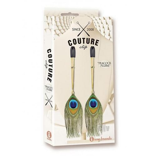 Simply the world’s most beautiful nipple clips, licensed to Icon Brands by Paris’ renowned designers, Atelier Elysee. Shown in actual size on their elegant packaging, they feature exquisite pairings of delicate feathers, ornate beading and rich metallics in combinations as stunning as a Parisian sunset. In Peacock Plume the designers have taken truly wondrous mini-peacock feathers and simply suspended them from beautifully electroplated gold loops for an effect only nature could create! Wondrous mini-peacock feathers. Exquisite gold electroplating throughout Fully adjustable; one size fits most. Each feather features wonderfully colored stranding at bottom.