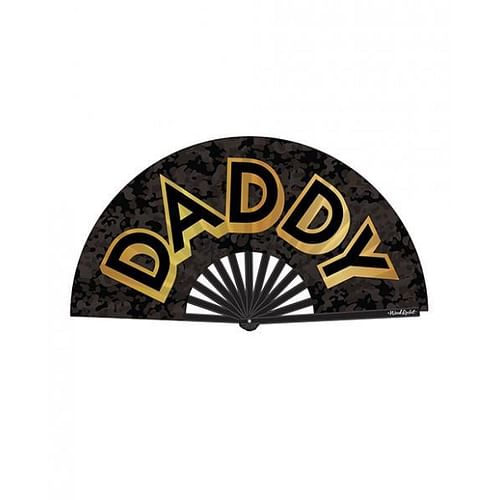 Daddy Paddle Hand Fan from Wood Rocket. The fans are folding fans, so the close as well as open. Plus can be used to fan. Fan measures approximately 13 inches in height by 24.5 inches in length by 0.75 inch in width open and 13 inches in height by 1.5 inches in length by 0.75 inch in width closed, folded. Fans are made of Bamboo Ribs and a Satin Fabric material for the fan. Bulk weight approximately 0.5 ounce. Categories: Bondage, Fetish, Party Games, Gifts, Supplies, Adult Gags, Gifts and Novelties. 2023.