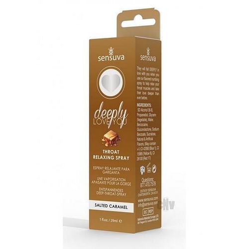 Sensuva’s Deeply Love You Throat Spray works its delectable magic for a more intense oral sex session. This spray is flavored and makes a treat for your tastebuds while relaxing the throat muscles to help reduce the gag reflex and therefore being able to deep throat during oral sex.They will fall deeply in love with you when you use this flavored throat desensitizing spray that helps relax your throat muscles and take their love deeper.TIPS:Spray 1-2 PUMPS into the back of the throatThe effect takes place immediately. Feel free to add more if desired.Benzocaine creates a slight numbing sensation to relax the throat muscles.Slightly sweet & available in five flavorsWater-based product; contains healthy ingredients