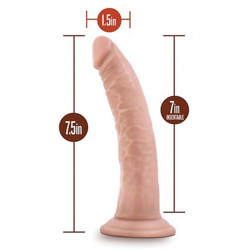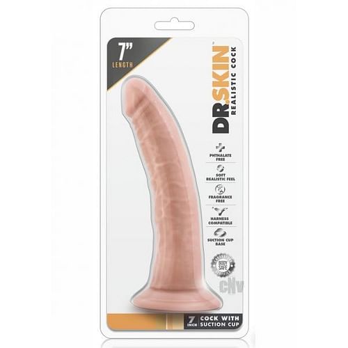Dr Skin 7.5 inches Cock With Suction Cup Base Vanilla Beige from Blush Novelties. Thick. Extra girth for those seeking to stretch their limits. Real feel. Detailed for a realistic look and feel. Versatile. Strong suction cup and o-ring harness compatible. Peace of mind. Made of body safe non-porous PVC. Contains no synthetic fragrance or latex.