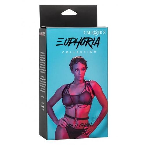 Step into the spotlight with the Euphoria Collection Multi Chain Halter, an exquisite piece that melds audacious style with the sensuality of premium design. This halter-style harness is a tribute to those who carry an air of confidence and the allure of mystery. It`s a statement piece that`s a total pleasure to wear. Crafted for comfort and adjustability, the harness features secure buckle closures that provide a custom fit, hugging your form with precision and care. The heavy-duty metal chain detail adds not only a bold visual appeal but also a satisfying weight that reminds you of its quality and durability. It`s the perfect blend of fashion and functionality, designed to be both a showpiece and a staple in your collection. Beneath the glint of metal lies the embrace of luxury, as the interior of the harness is lined with plushy velvet, offering a contrast of textures that`s as pleasing to the touch as it is to the eye. The vegan leather exterior stands as a testament to contemporary design that`s both ethically conscious and chic. Sturdy, double-padded, and double-stitched, the harness promises resilience through your most passionate movements. Each element, including the nickel-free metal accents, is meticulously chosen to ensure that the Euphoria Collection Multi Chain Halter is inclusive for all skin types. Sized to fit most, this piece is a celebration of diversity and durabilityandmdash;an invitation to explore your desires with elegance and boldness.