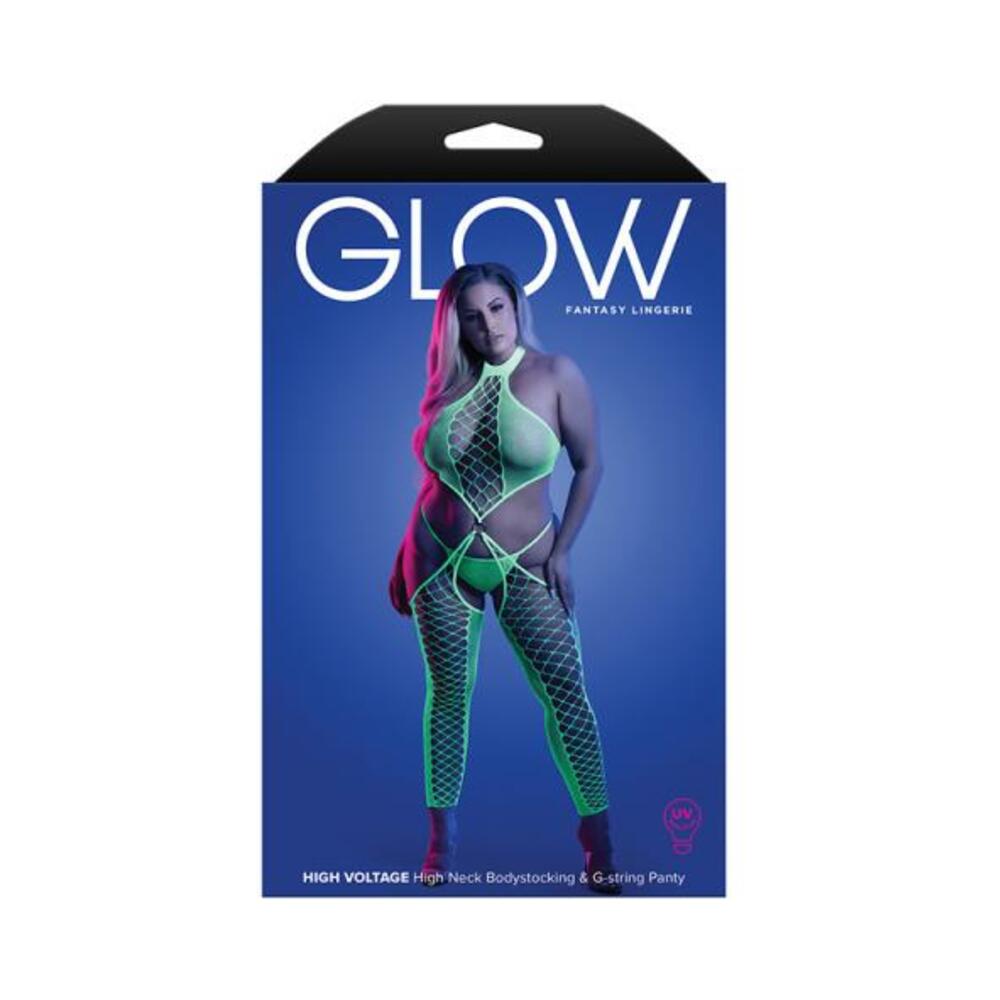 Fantasy Lingerie Glow High Voltage Uv Reactive High Neck Bodystocking & G-string Panty Queen Size