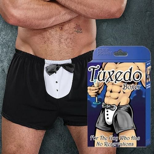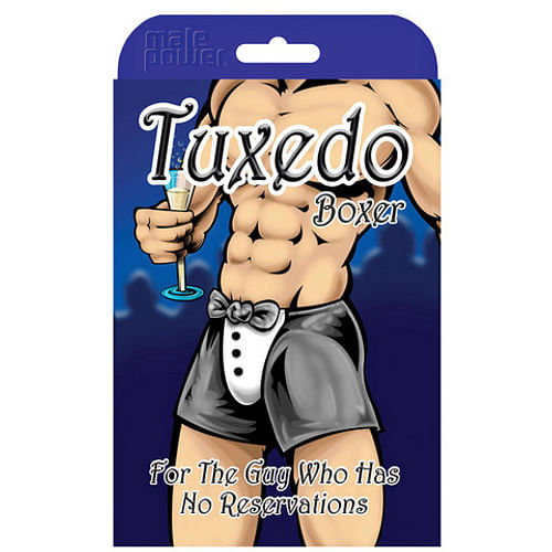 For the guy who has no reservations! The Male Power boxer is made of 100% Nylon. The one-size fits most outfit has a tuxedo design on the crotch. Get your balls in an uproar!
