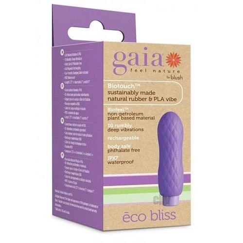 This pleasure-packed vibe is crafted from BioTouch, a 100% soft natural rubber responsibly harvested from rubber trees and the bullet is made of BioFeel, a plant-based bioplastic that makes this product more eco friendly and sustainable. Enjoy the powerful 10 vibrating modes consisting of 5 speeds and 5 unique patterns delivered through the Rumble Tech motor and controlled with an easy push button. Eco Bliss has a tapered head for pinpointed stimulation and a textured, soft body for additional sensations during play. IPX7 submersible waterproof and magnetic USB rechargeable, Eco Bliss is ready to go the distance. Ultrasilk® satin smooth and beautiful to behold, Eco Bliss is the perfect way to treat yourself!