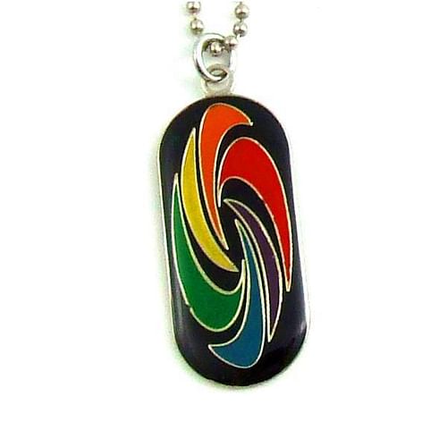 Gaysentials Swirl I.D. Tag Necklace from PHS International. Metal chain necklace features a swirl of colors. Fun necklace for play and wear. Features: vibrant Rainbow colors. One size fits most. Durable. Great gift. Lightweight.