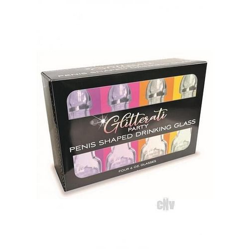 This set of 4 penis shaped glasses are perfect for bachelorette celebrations. Each glass measures 5.5 inches tall and holds 6oz. This is one of newest additions to the Glitterati line of party products.andnbsp; Complete the look with coordinating balloons, candles and more!andnbsp;