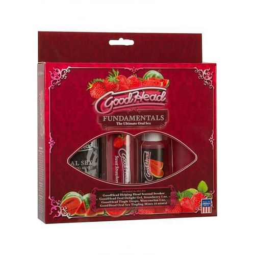 Looking for a mind blowing experience down there? GoodHead Fundamentals provides everything you need for wonderful oral pleasure, time after time! The Sweet Strawberry flavored GoodHead Oral Delight Gel will turn your lovers package into a sweet strawberry treat and just a few drops of the delicious Watermelon flavored Tingle Drops will provide the most satisfying blow job experience ever!