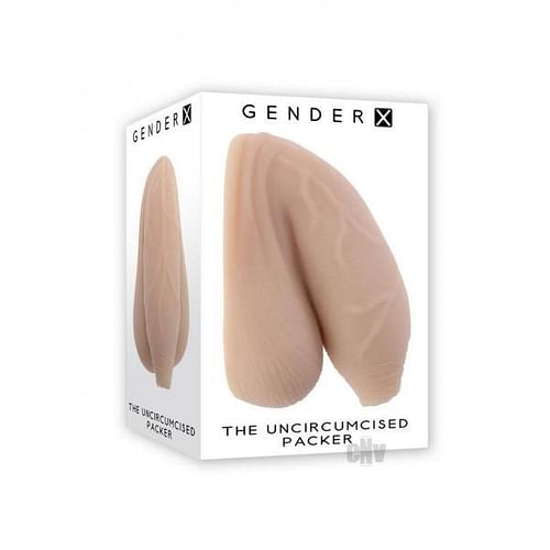 The Uncircumcised Packer Light This true-to-feel packer features a realistic uncircumcised penis and balls with life-like veins and wrinkles, designed as a satisfying weight to tuck securely into close-fitting garments.