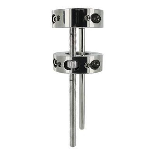 Maintain a pleasant tug on your balls or experience a tortuous extreme stretch with the fully adjustable Hells Bridge Ball Stretcher. With the two stainless steel rings side by side, place your balls through the openings and lock the rings closed with the included hex key. Now that both rings are secure around your sack, you can begin to rotate the nut on the side of the outer ring, causing the rings to draw farther apart. Take the stretch as far as you can stand it!