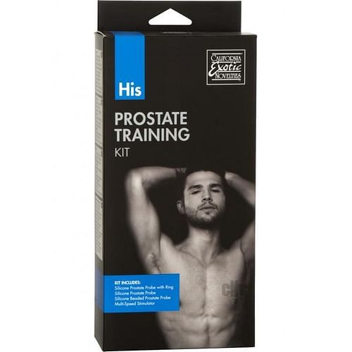 His Prostate Training Kit. Powerful multi-speed stimulator. Superior Silicone pinpoint probe with curved base for comfort and fit. Solid, sturdy, Silicone beaded probe with retrieval loop. Slip stimulator into retrieval loop of beaded probe for reverberating vibrations. Silicone prostate probe with support ring for the ultimate support plus stimulation.