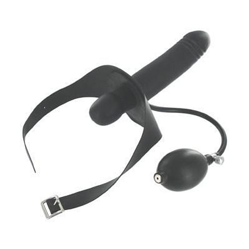 Made to serve two functions at once, this Inflatable Gag with Dildo will surely make things interesting. The inside part functions as a mouth gag that once securely put on, can be inflated. After the gag is put on, and inflate if desired, the other partner can then use the outside dildo for penetration. The partner that is gagged will get an up close view of the action as the dildo goes in and out.