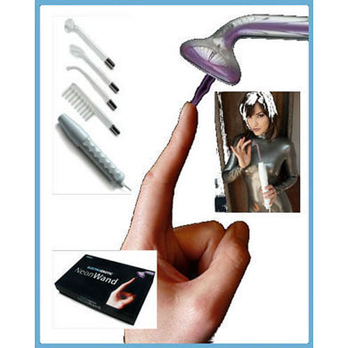 The level of sensation created by the wand can be controlled both by a multi-level intensity dial on the wand itself, and also by which electrode you choose to use. The Neon Wand kit comes with 4 different glass attachments (Electrode Comb, Mushroom Tube, 90deg Probe, Tongue Tube) that will be a thrill to experiment with. The kit color refers to the color of the light glowing in the glass electrodes.