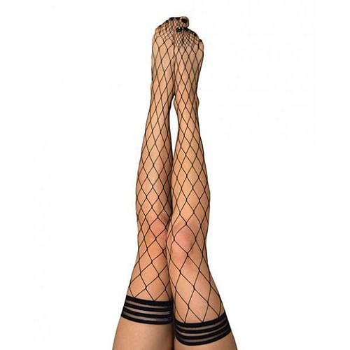 Here’s a little netting they won’t soon be forgetting. Black large net fishnet thigh high. With a no-slip grip.