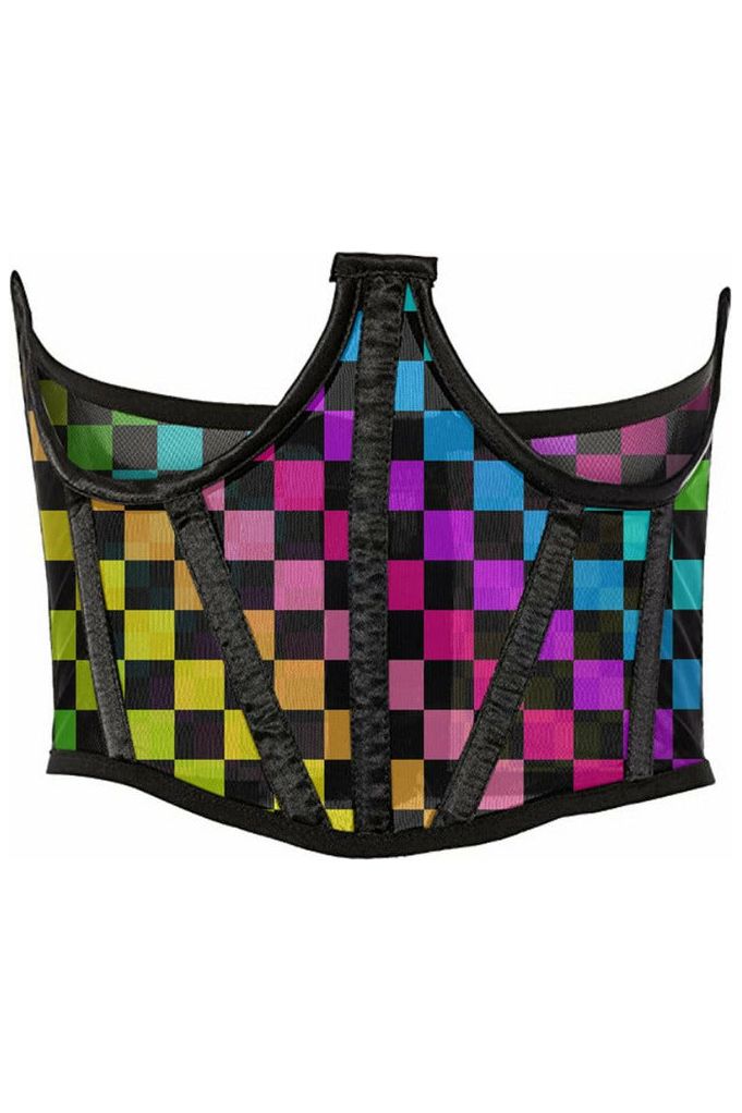 Lavish Rainbow Checkers Print Mesh Open Cup Waist Cincher