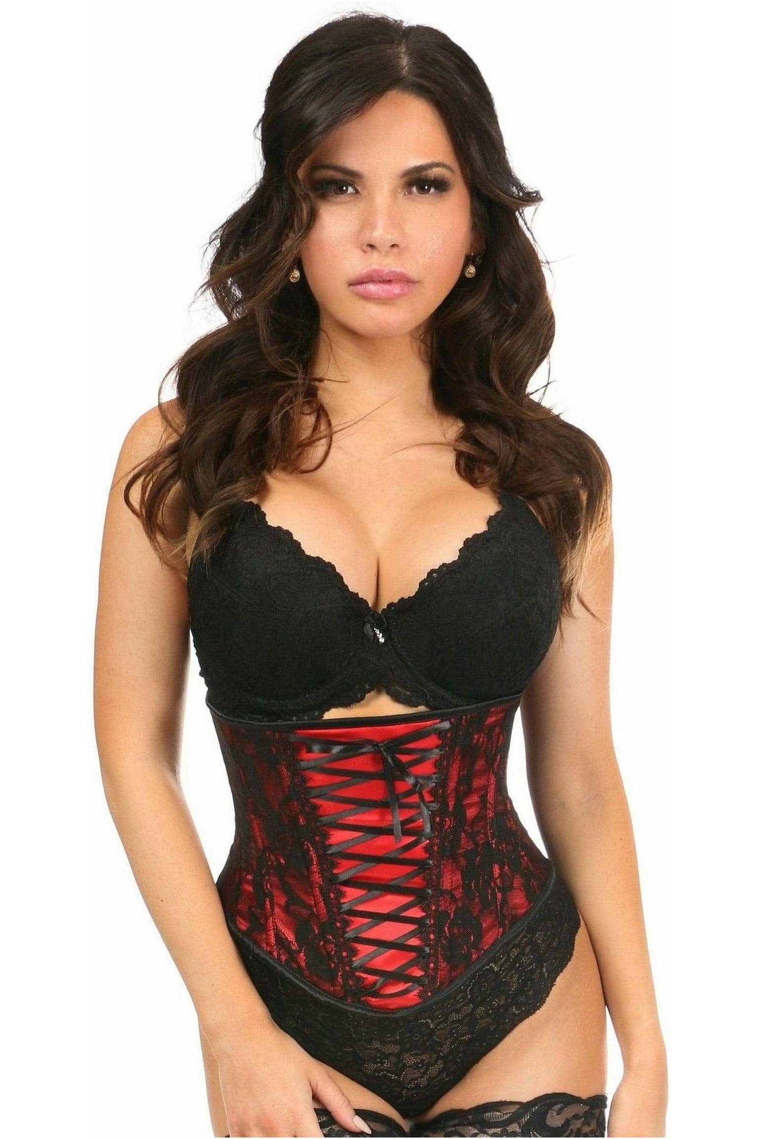 Lavish Red Lace-Up Under Bust Corset w/Black Lace