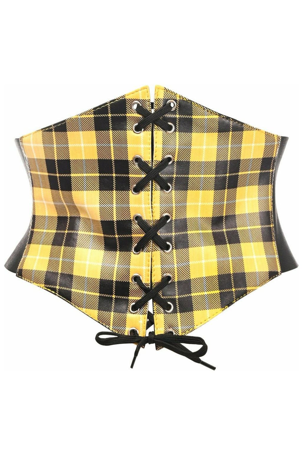 Lavish Yellow Plaid Lace-Up Corset Belt Cincher