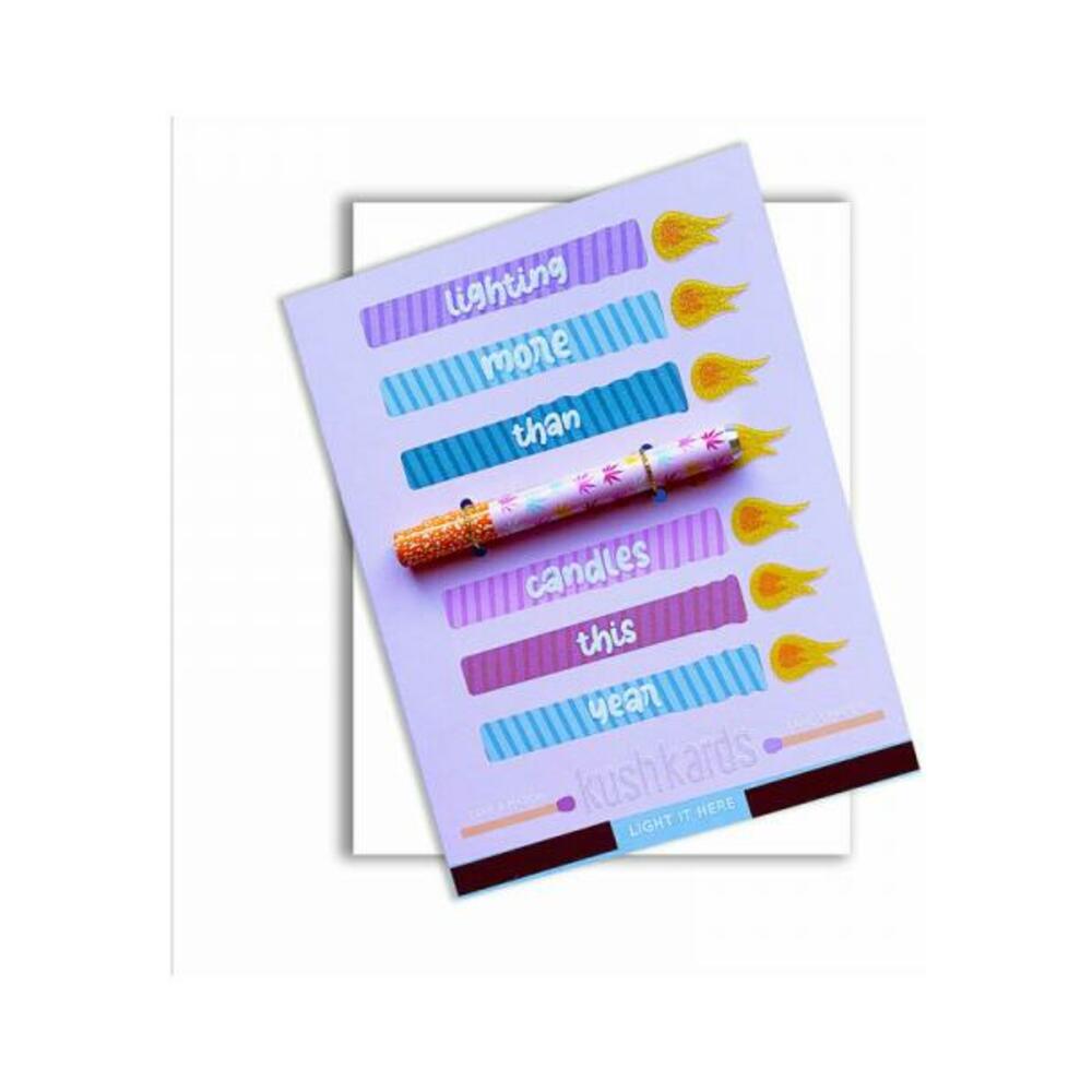 Because what stoner isn’t lighting more than just candles? The Lighting More Than Candles Cannabis Greeting Card is for those ready to get lit. This one of a kind stoner birthday card is top quality with a shine of glitter in the flames. Includes Metal Multicolored One-Hitter Pipe.Inside: Let’s Get TurntThe Original Cannabis Greeting Card AKA the Gift with a Lift. KushKards are colorful, clever, fun, and unique greeting cards for the cannabis enthusiast and their friends. Made on high-quality paper in the USA.DISCLAIMER: IT IS ILLEGAL TO MAIL ANY PRODUCTS CONTAINING MARIJUANA