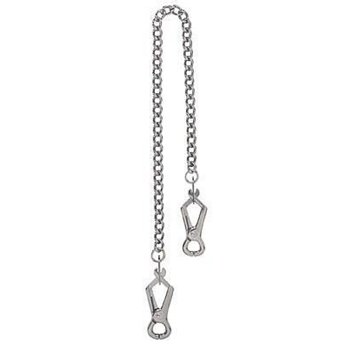 Focus pain and pleasure when you try out this simple but erotically effective nipple clamp and chain set. Made of two strong forceps-style clamps, the central connector is made of a jewel link chain that’s light enough for extended wear, but provides a sensual control cord for lovers to tug, flick, and restrain. The perfect way to enhance BDSM and kink play, the clamps remain taut with a central spring design, and are not adjustable. Color: Silver Type: Nipple Clamps Material: Metal Special Features: Connecting Chain