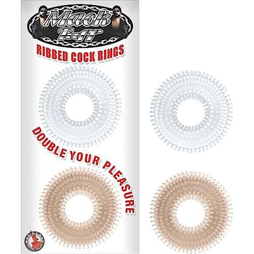 Mack Tuff Ribbed Cock Rings from Nasstoys of New York. Double your pleasure. Made using phthalate free materials Thermoplastic Rubber TPR. Sizes outside diameter 1.77 inches, inside diameter 0.6 inch.