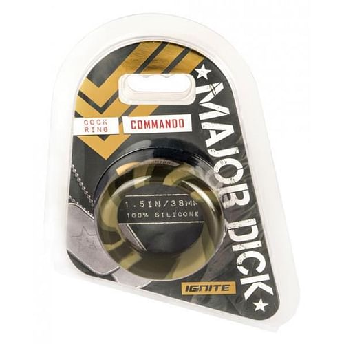 Major Dick Commando 1.5 inches Wide Silicone Cock Ring. Made using body safe materials pthtalate free and latex free. Always clean before and after use. A water based person lubricant works best. Never use silicone based lubes with silicone adult products. Color camouflage.
