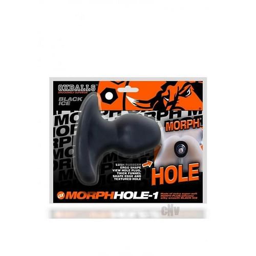 MORPH-HOLE softer stretchier FPLUG by Oxballs MORPH-HOLE gaper fplug in new velvet black ice MORPH-HOLE fuckplug is based on our original PIGHOLE fuckplugs with all the best features a hole-gaping fuck+ toy stuffing plug should havein new MORPH stretch PLUS+SILICONE TPR/Silicone rubbery blend and velvet BLACK ICE color. MORPH-HOLE has a ergo shape designed to fit all around, the plug is shaped to fit right, just deep enough–wider where you want, but narrow where you need so you can grip it in. Every part is designed for play you cravethe inner plug humps the right spot, the inner opening fits toys and more with a larger knob-chamber opens wider with rings and humps for your partners pleasure. We re-thought how the base of this fplug should work–it curves to morph into your trench, with crack-stretching thick rim-lips that keeps your gaping wide. From the outside you get an amazing wide, deep funnel base, it`s super-huge because we KNOW how you use gape-plugs. The wide-mouth base makes filling and lubing deep inside easier, makes crack-stuffing with toys the bestthe neck is narrow enough to clamp down and keep MORPH-HOLE in, the base is huge for toy stuffing or your buddy can slide insidenobody will miss that huge gape. NOTE: compare plug measurements with your current hole-toys when choosing size that fits you. OXBALLS created the first gaping fplug, MORPH-HOLE black ice adds a deep funnel base to the best fplug design. We design the cool gear for all fetish play. BULLET POINTS: Deep velvet BLACK ICE color Ergo shape with wide-mouth gape-stretching base Inner chamber is ribbed and has humps to partners pleasure The right firmness to hole you open and let toys in Smooth slick finish PLUS+SILICONE feels velvety and slick MORPH-HOLE is a original design copyright OXBALLS PLUS+SILICONE TPR/Silicone blend, non-toxicand phthalate free. LUBE SAFE: Water-based or silicone. CARE: Wash after use in warm soapy water, air dry. Store toys separately: we recommend breathable cloth pouches or cotton socks. PACKAGING DIMENSIONS: MORPH-HOLE-1Length: 4/10 cm Width: 2/5 cm Depth: 2/5 cm Largest circumference: 11.3/29 cm Smallest circumference: 5/13 cm Usable circumference: 5-6.5/13-17 cm Inner hole diameter: 1-2/3-5 cm Base length: 4.5/12 cm Base width: 2.5/6 cm Product weight: 5 oz PACKAGING DIMENSIONS: Length: 8/20 cm Width: 6.5/17 cm Depth: 2.5/6 cm Package weight: 7 oz MADE IN CHINA MORPH-HOLE-2Length: 6/15 cmWidth: 2/5 cm Depth: 3/8 cmLargest circumference: 16/41 cmSmallest Circumference: 6.5/17 cmUsable circumference: 6.5- 9/17-23 cmInner hole diameter: 1.5-3/4-10 cm Base length: 6.5/17 cm Base width: 4/10 cm Product Weight:13 oz MADE IN CHINA