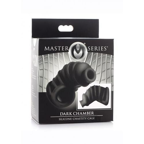 Confine his cock in this Dark Chamber! This Silicone Chastity Cage is soft, flexible, and velvety for a more forgiving lock-up compared to metal and plastic chastity cages. The Dark Chamber features a soft skeleton of slightly firmer silicone for that authentic cage feel, but still molds with your body for comfort during wear. Designed and constructed with premium, velvety silicone for a comfortable caging! The Dark Chamber features a cum thru tip for easy relief during wear, making this comfy cage perfect for extended chastity scenes for beginners and experts. Unlike cages made from plastic and metal, the silicone material is travel friendly and discreet. The flexible nature works with your clothing rather than against it, so you can go about your day protected without a large bulge in your undergarments! This cage is held in place thanks to a snug cock and ball opening.