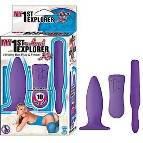 Explore your own erotic adventure with this 10 function vibrating butt plug and pleaser kit. Dual multi-function vibration. Pleaser is 5 inches, butt plug is 3.875 inches. Waterproof, phthalate free, RoHS compliant. Requires 2 AA batteries (not included).