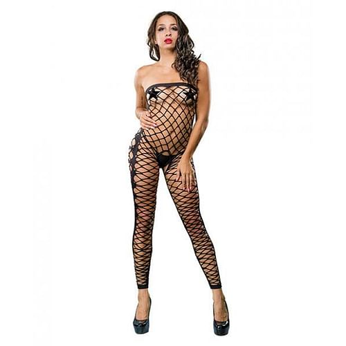 Naughty Girl Mesh Jumper O/S from Beverly Hills Naughty Girl Lingerie line. This is a very hot and sexy one piece catsuit. It is an all over mesh with a wild design along the sides. Butt less and crotchless, need we say more? You are guaranteed to get your partners attention. It is very durable and stretchy, made of Nylon and Spandex. One size fits most. 90 pounds to 160 pounds. Fabric content 92% Nylon, 8% Spandex. Washing instructions: hand wash warm water. Drip dry. Do not iron. For long durability and enjoyment of this dress, follow the washing instructions.