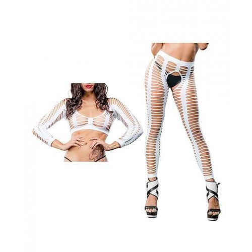 Naughty Girl Sexy Leggings White O/S from Beverly Hills Naughty Girl lingerie line. Features all over straps mesh crotchless leggings. Leggings can also be worn as a top. Please note panty not included.