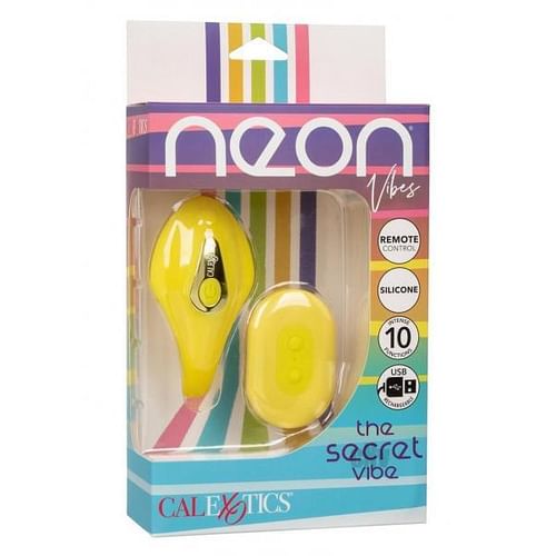 The Neon® Vibes The Secret Vibe puts knee-shaking pleasure at your very fingertips with a handy remote control! The ergonomically curved remote controlled vibrator is sure to thrill with pinpoint stimulation and full-coverage vibrations. The playful vibe indulges your every fantasy with 10 functions of vibration and a unique multi-use design for versatile play with an easy to use remote control. The contoured shape and ultra-plush silicone are made to explore sensual sweet spots and pinpoint intimate desires with ease. Turn the heat up on foreplay with the teasing versatile shape that can be used as a finger vibe, panty teaser, and so much more. The discreet mini remote control makes it easy to enjoy adventurous foreplay. Once fully charged, the versatile panty teaser has an orgasmic controller range of up to 32.75 ft (10 m) away! Get playful with up to 60 minutes of stimulation with every charge. Charge up your passion in only 1.5 hours by plugging the provided USB cable into the self-sealing charging port on the back of the massager and the remote. The massager`s discreet size makes it the perfect travel companion, letting you embrace radiating pleasure wherever your fantasies take you.