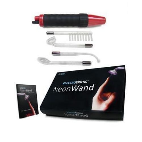 Neon Wand Red Electrosex Kit includes the following electrodes, electrode comb, mushroom tube, 90 degree probe and tongue tube. A state-of-the art electro stimulation device perfect for seasoned pros as well as new users.Give yourself or your partner a whole new level of sensation with Kinklabs Neon Wand. The wand creates shock sensation when there is a gap between the electrode or the attachment and the body. As the wand is held near to the body, the spark will jump, providing the sensation. Red becomes red once lit. Electrodes Included: Electrode Comb, Mushroom Tube, 90 degree Probe, Tongue Tube. A state-of-the art electro stimulation device perfect for seasoned pros as well as new users. Please note this item is available in 2 colors and various volts: KL932 Purple 110v, KL932EU Purple 220v, KL933 Orange 110v, KL933EU Orange 220v. 110 USA, 220 Europe version. Each sold separately.