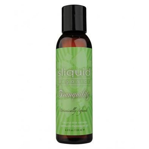 From Sliquid Organics comes the Tranquility Massage Oil. Tranquility is a relaxing, calming blend of Coconut, Lime, and Verbena, designed to de-stress and relax with every application. Calling to mind visions of relaxing in a sunny paradise, Tranquility will allow you to forget the stress of everyday life, and usher in a feeling of peace in an otherwise hectic world. Organics Tranquility Ingredients: Sweet Almond Oil (Prunus Amygdalus), Coconut Oil (Cocos Nucifera), Grape Seed Oil (Vitus Vinifera), Sunflower Seed Oil (Helianthus Annuus), Macadamia Nut Oil (Macadamia Ternifolia), Jojoba Seed Oil (Simmondsia Chinesis), Mango and Shea Butter (Butyrosperum Parkii), Vitamin E (Tocopherol Acetate), Certified Organics Extracts of Flax, Alfalfa, Green Tea, Hibiscus and Aloe Barbadensis, Natural Essence of Lime (Citrus Aurantifolia).