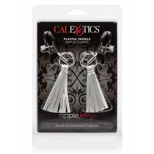 Features: designer clamps with soft, tantalizing tassels to tease and entice. Includes 2 fully adjustable multi-use clamps with comfortable pads. Non-tarnishing, nickel free. Dimensions Clamps 2.25 inches by 1.25 inches. Package 0.75 inch by 5.75 inches by 8.5 inches.