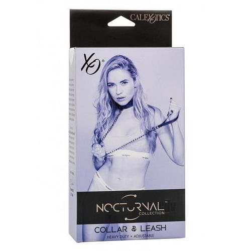 Experience the exquisite blend of elegance and control with the Nocturnal Collection Collar andamp; Leash. This sophisticated set features a sturdy collar, accompanied by a detachable leash, offering versatility in your intimate moments. The collar is fully adjustable, equipped with a secure buckle closure, ensuring a comfortable and tailored fit for various sizes. Complete with a heavy-duty metal chain, the leash provides a touch of sensuality and dominance to your play. The universal clasps and D-ring, complete with a swivel design, enhance dexterity and movement, allowing for a seamless and dynamic interaction between partners. The collar and leash set is a statement piece, symbolizing trust and connection. The double-stitched design ensures strength and resilience, making it a staple in your collection. Functional, durable, and textured, the Nocturnal Collection Collar Leash is essential for those who seek to deepen their sensory experiences with sophistication and style.