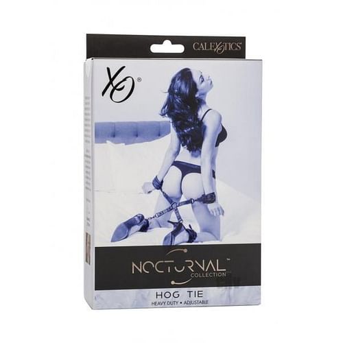 Start your BDSM adventure with the Nocturnal Collection Hog Tie, a masterpiece of design for those who revel in the art of restraint play. This exquisite set is a testament to the perfect balance between robust control and luxurious comfort. Featuring four fully adjustable cuffs, each with a secure buckle closure, it`s designed to accommodate various sizes while ensuring a sturdy hold and ease of use. The heart of this collection lies in its sturdy hog tie connector, a central piece that brings together the individual elements into a cohesive and thrilling experience. Crafted for both strength and flexibility, it allows for a variety of positions and levels of restraint, catering to a wide range of preferences and desires. The universal clasps and D-ring, featuring a swivel design, enhance the overall dexterity, allowing for seamless movement and adjustment. Durability is a key aspect of the Nocturnal Collection Hog Tie, evident in its double-stitched design. This not only adds to the longevity of the product but also enhances its aesthetic appeal. The functional design is matched with a textured finish, providing both a visually appealing and tactile experience, heightening the sensory play that is central to such adventures. Versatility is another hallmark of this collection. The hog tie can be disassembled completely, allowing the cuffs to be used individually as wrist or ankle restraints. This multifunctional aspect makes it a valuable addition to any collection, suitable for both beginners and seasoned practitioners alike. Whether used as a cohesive unit or as separate components, the Nocturnal Collection Hog Tie promises an experience that is the perfect blend of form, function, and fantasy.