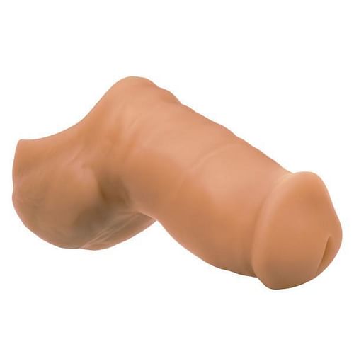 Uniquely designed hollow packer with STP (stand to pee) functionality. Full size opening to accommodate any size user. Pliable and durable design fits snugly into most packer harnesses. Ultra soft premium silicone packer holds shape during use. Ultra life like look and feel with realistic scrotum and perfectly sized opening.