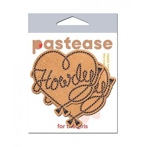 Pastease Brand Howdy Rope Heart Lasso Pasties. Howdy Cowboy Rope Heart Lasso Pasties Nipple Covers by Pastease. Introducing Howdy Pastease. Embrace the Wild West with a Touch of Sparkle! Yee haw, cowgirls! Saddle up and get ready to show off your true rodeo spirit in Howdy Pastease. This is not just any ordinary accessory. It is a bold statement that combines the rustic charm of the wild west with a touch of glitzy glamour. Features the word Howdy hand crafted in Bold Black Rope lettering, capturing the essence of genuine western hospitality. The heart is detailed in the same rugged rope design, giving it an authentic feel that you will only find out on the range. And what better way to set off this masterpiece than against the backdrop of our glittering velvet in a timeless camel color? The velvet brings an air of elegance, reminding us of those vintage saloons and ballrooms where cowboys and cowgirls twirled under the starry skies. The sparkling effect catches the light just right, ensuring you are the center of attention no matter where you go from line dancing at your favorite honky tonk to making a bold statement at any event or riding your favorite cowboy. Whether you are two stepping on the dance floor or riding the open trails, the New Howdy Pastease is the ultimate fusion of country heritage and contemporary style. So, giddy up and grab yours today to let your western spirit shine as bright as the Texas sun. It is time to say Howdy to a new era of country chic! Dimensions 3 inches by 2.7 inches. Coverage 2.1 inches. Authentic Western Charm. The word Howdy in black rope lettering brings an instant touch of genuine western hospitality, reflecting the warmth and friendliness of the wild west. Glittering Velvet Elegance. The classic camel-colored velvet background adds an air of elegance, reminiscent of vintage saloons and grand ballrooms, bringing together the old and the new in one stunning accessory. Sparkling Shine. The velvet has a glittering effect catches the light in a mesmerizing way, making you the star of your own rodeo. Heart shape pasties. Handcrafted wearable artistry. Meticulously hand crafted in the USA to capture the essence of the wild west.