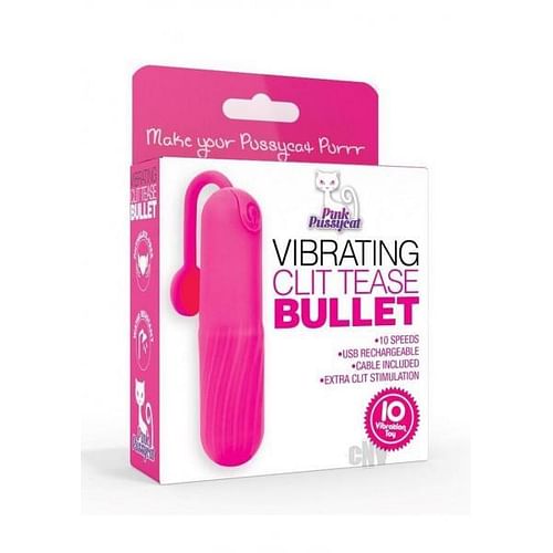 Pink Pussycat Clit Teaser Bullet Vibrator from the Cousins Group. Make your pussycat purr. Vibrating Pink Bullet Vibe. 10 speeds. USB Rechargeable. USB cord included. Categories: Vibrators, Clitoral Vibrators, Rechargeable Vibrators, Sex Toys for Women. 2022.