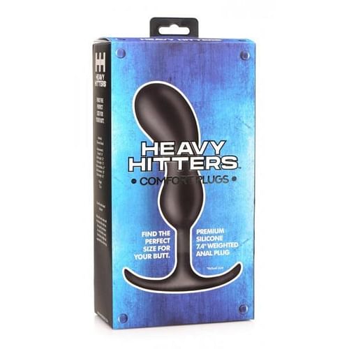 Take a Heavy Hit to your backdoor – this curved comfort plug is crafted to fill your ass and rub your prostate with its velvety exterior and heavy metal weightiness! This premium butt plug is ergonomically shaped to fill your booty with two bulbs, each featuring an internal metal weight to add a solid mass for you to squeeze and a delicious downward pull on your hole. The plush, velvety exterior is constructed with premium silicone that is phthalate free and body safe for a satisfying, worry-free backdoor fill! The slim base and neck is easy on your hole and your buttcheeks for even more comfort when you manage to fit this whole plug into your body. Compatible with water based lubes only. Measurements : Overall length 7.4 inches, bulb length 5.2 inches, neck length 1.5 inches, total insertable length 6.7 inches, bulb diameter 1.8 inches, base length 4.3 inches Note : 12 ounce weight Materials : Silicone, metal Color : Black